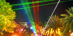 River Palms Resort Casino, Nevada - The biggest outdoor laser show venue in the Western U.S. presented nightly LASERIUM mini-shows on the 25-story Hotel Tower, as brilliant laser beams danced overhead. Two large full-color laser systems and an amazingly bright green laser comprised the equipment for this dazzling display.